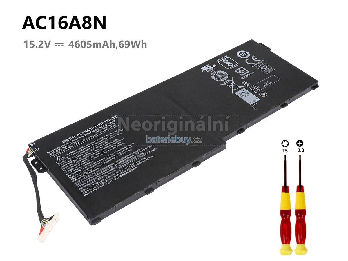 - Zbrusu nová náhradní baterie Acer Aspire VN7-593G-7260 je speciálně vyrobena pro notebook Splňuje nebo překračuje původní specifikace OEM.
