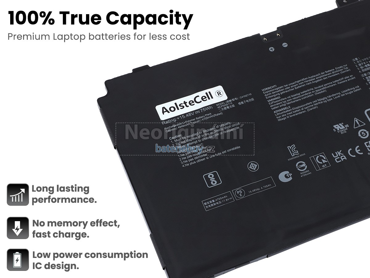- Baterie do notebooku Asus 0B200-04220000 je vyrobena z vysoce kvalitních komponent a její vysokokapacitní baterie dokáže zajistit dlouhou životnost baterie.