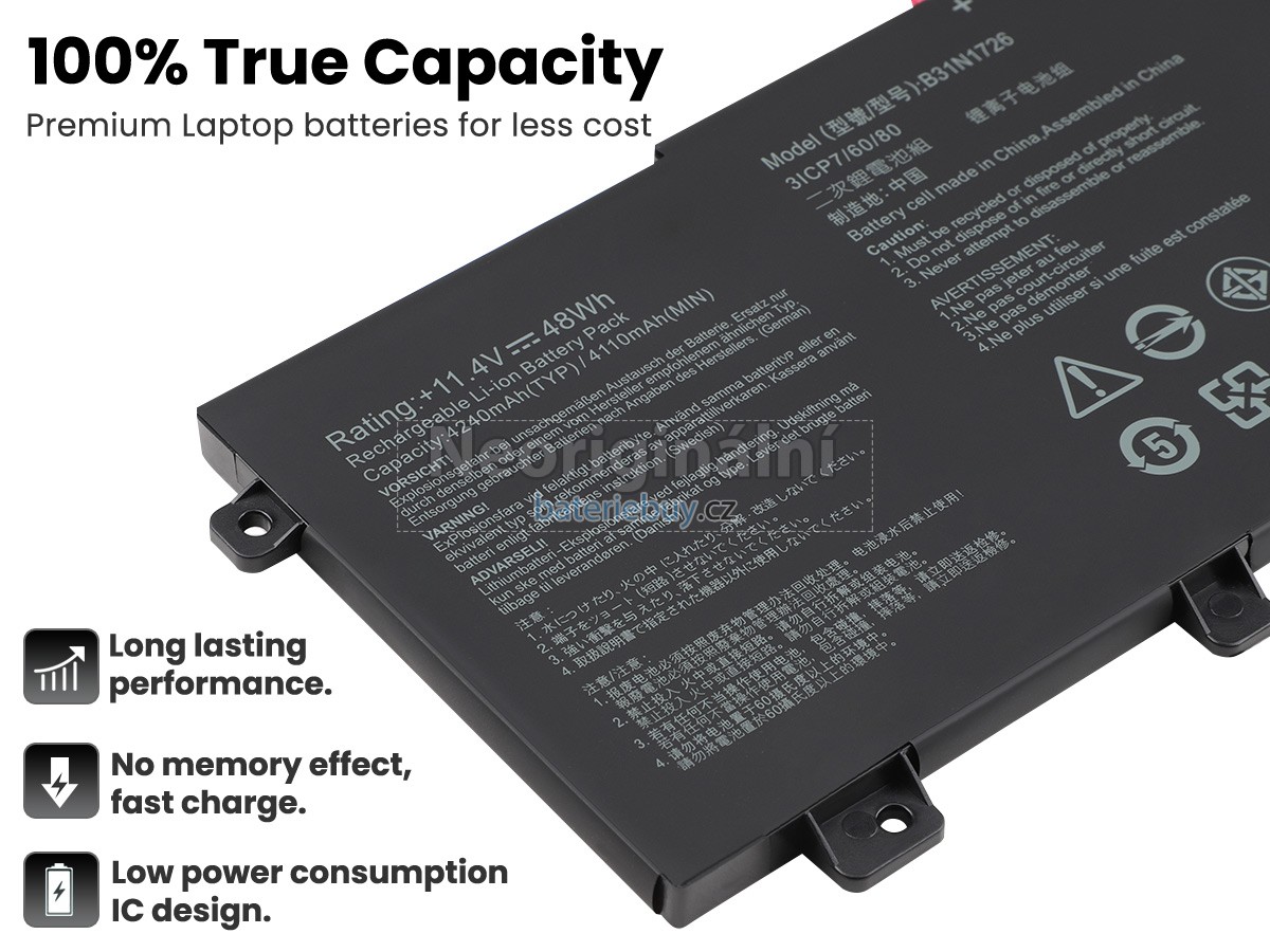 - Baterie pro notebooku Asus B31N1726 mají jednoroční záruku kvality a 30 denní záruku vrácení peněz. Určitě si ji kupte.