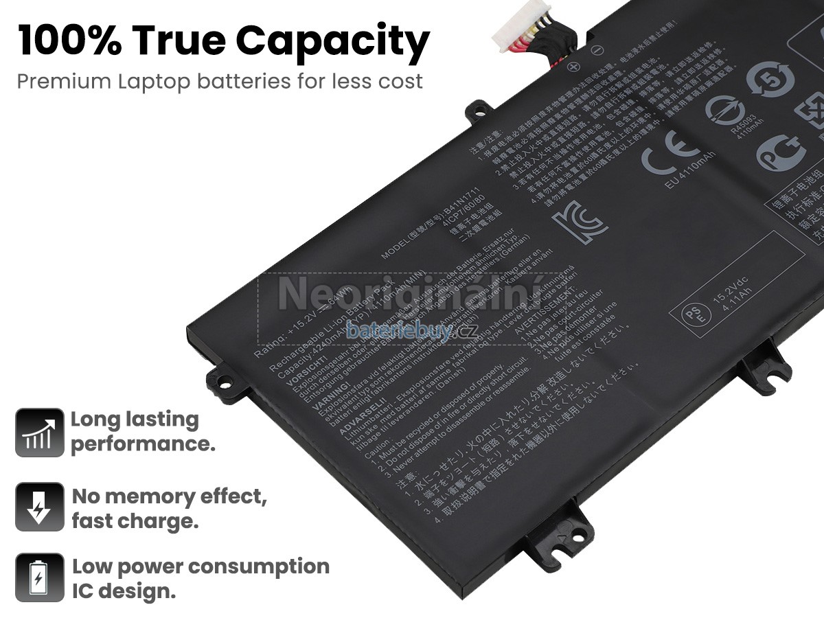 - Baterie do notebooku Asus B41N1711 je vyrobena z vysoce kvalitních komponent a její vysokokapacitní baterie dokáže zajistit dlouhou životnost baterie.
