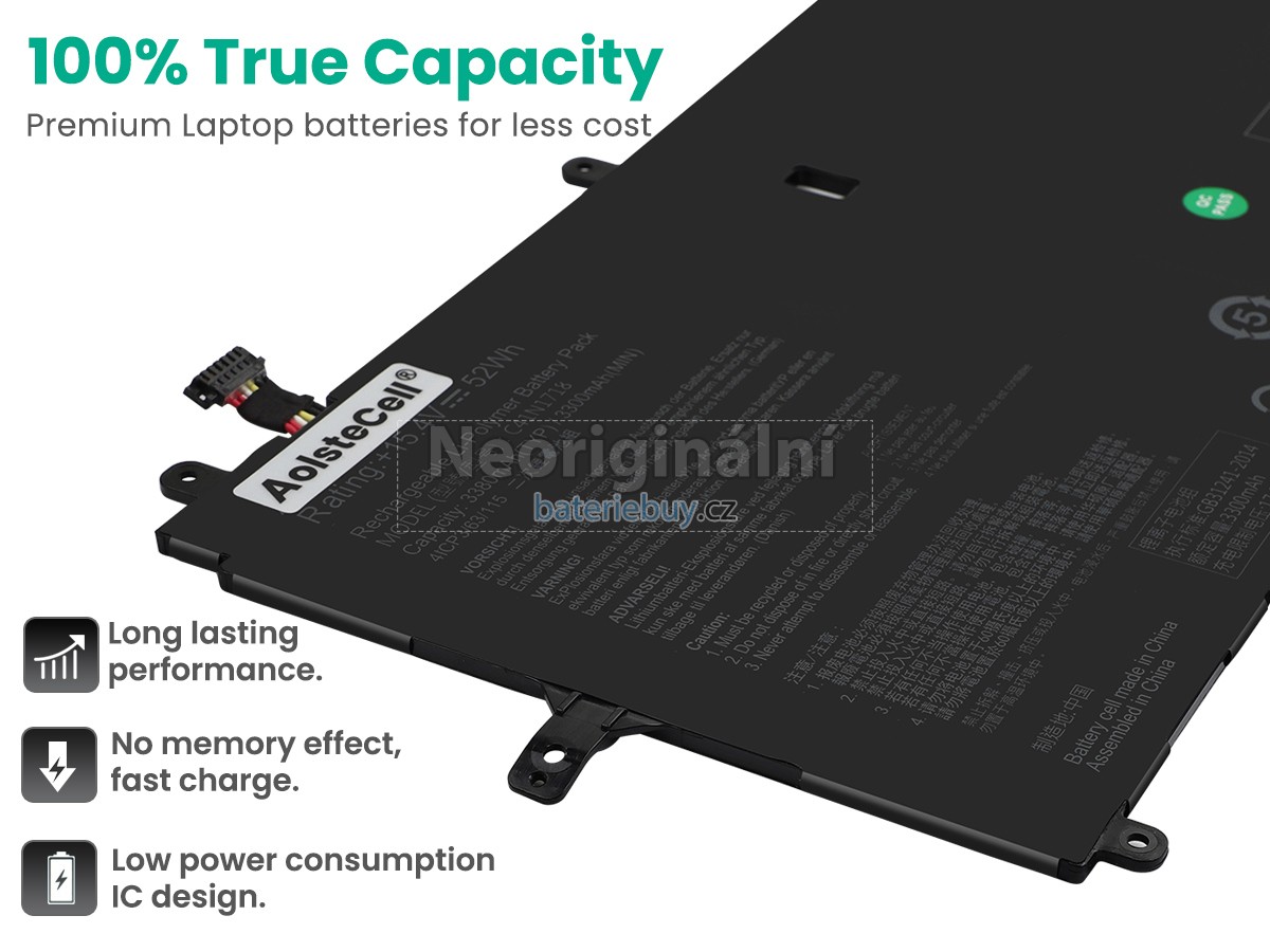 - Baterie do notebooku Asus NOVAGO TP370QL-4G64G je vyrobena z vysoce kvalitních komponent a její vysokokapacitní baterie dokáže zajistit dlouhou životnost baterie.