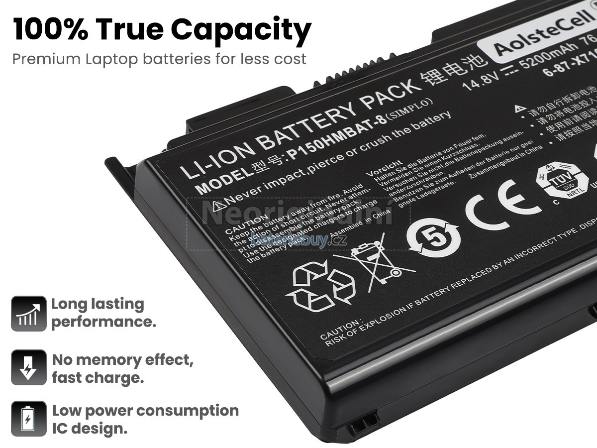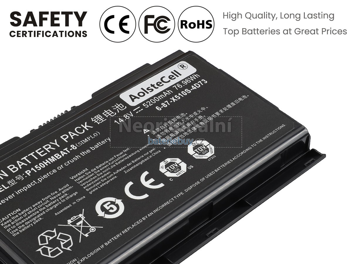 - Baterie do notebooku Clevo P150HMBAT-8(X510S) je vyrobena z vysoce kvalitních komponent a její vysokokapacitní baterie dokáže zajistit dlouhou životnost baterie.