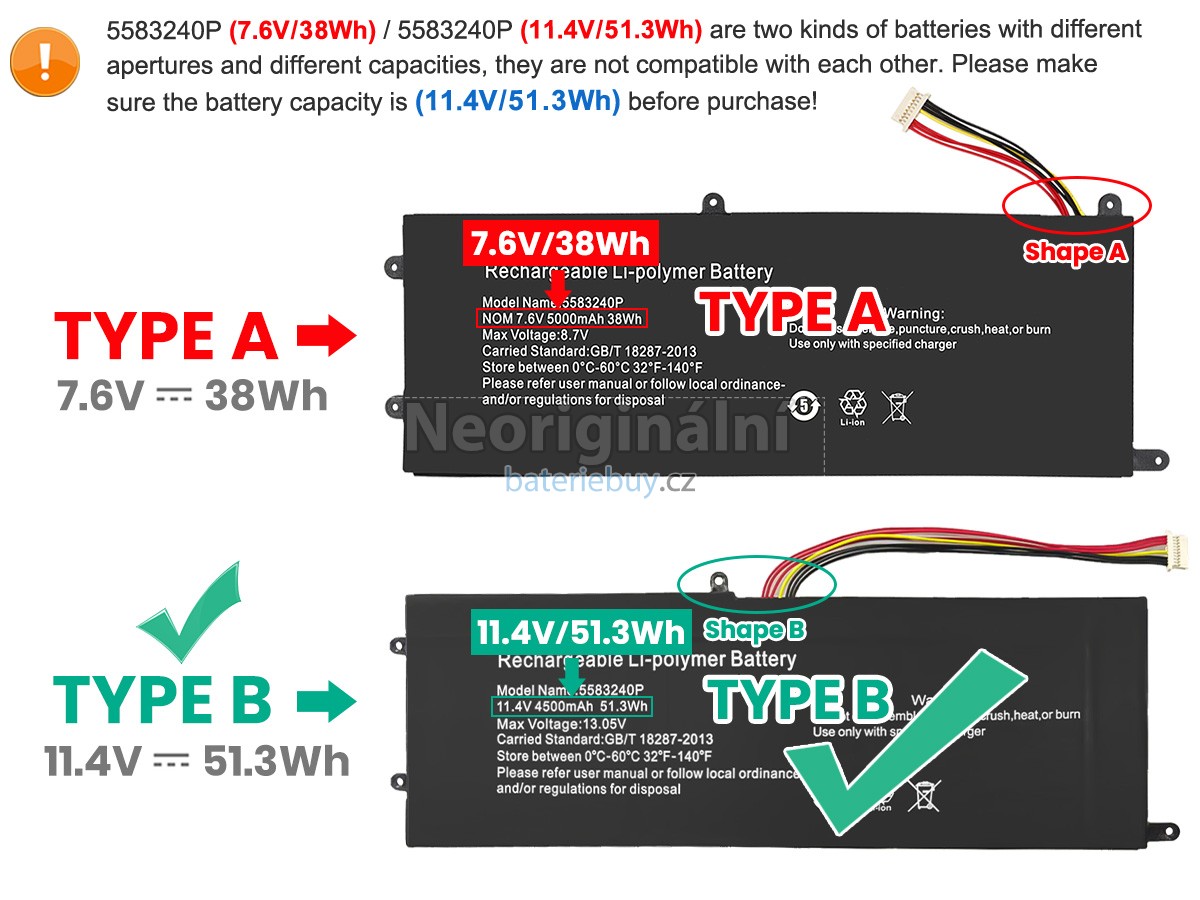 - Baterie do notebooku Cooyes 5583240P je vyrobena z vysoce kvalitních komponent a její vysokokapacitní baterie dokáže zajistit dlouhou životnost baterie.