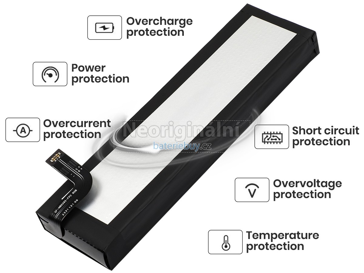 - Baterie se skládá z lithium-iontové baterie, která má vysokou rychlost nabíjení a vybíjení. Je bezpečná a stabilní a poskytuje více než 500 nabíjecích cyklů.