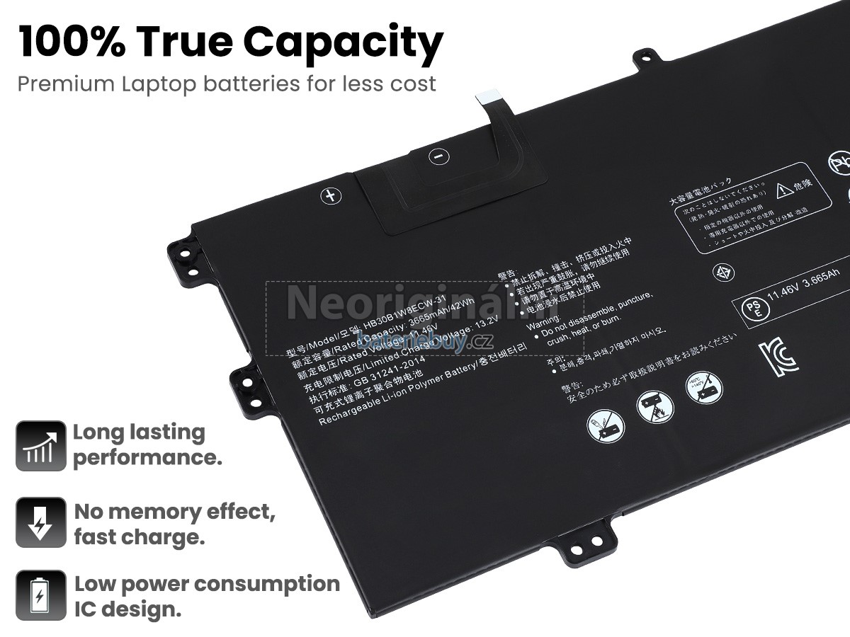 - Baterie do notebooku Huawei HB30B1W8ECW-31 je vyrobena z vysoce kvalitních komponent a její vysokokapacitní baterie dokáže zajistit dlouhou životnost baterie.
