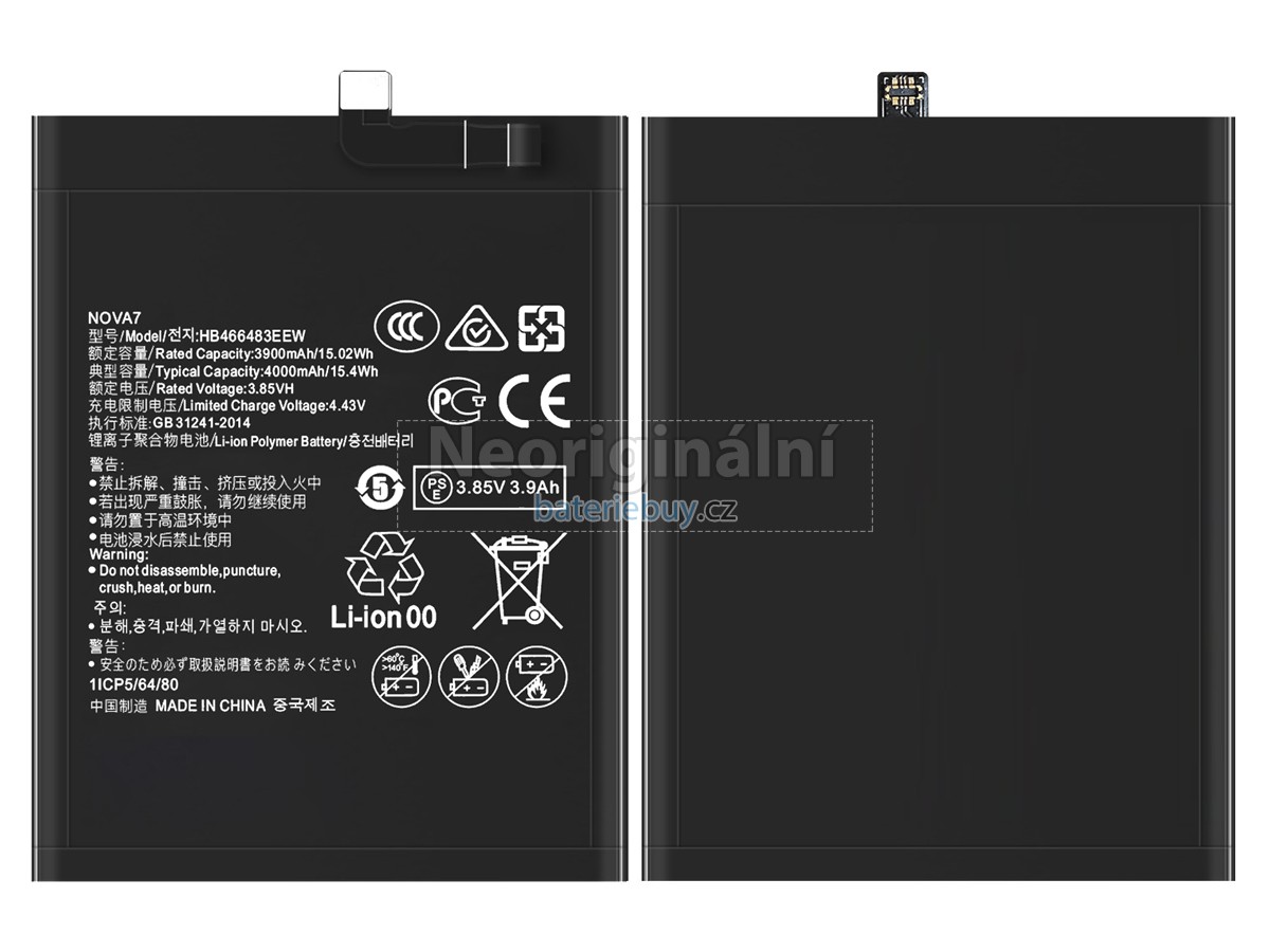 - Baterie pro Huawei NOVA 7 PRO 5G je vyrobena z vysoce kvalitních komponent a její vysokokapacitní baterie dokáže zajistit dlouhou životnost baterie.