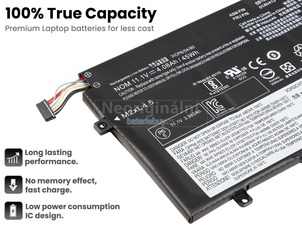 - Baterie do notebooku Lenovo SB10K97570 je vyrobena z vysoce kvalitních komponent a její vysokokapacitní baterie dokáže zajistit dlouhou životnost baterie.
