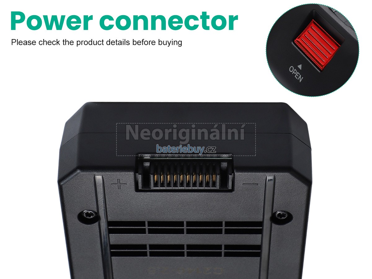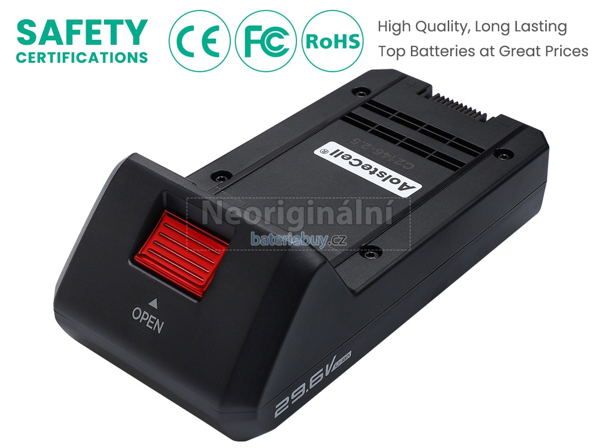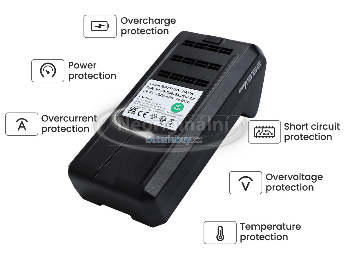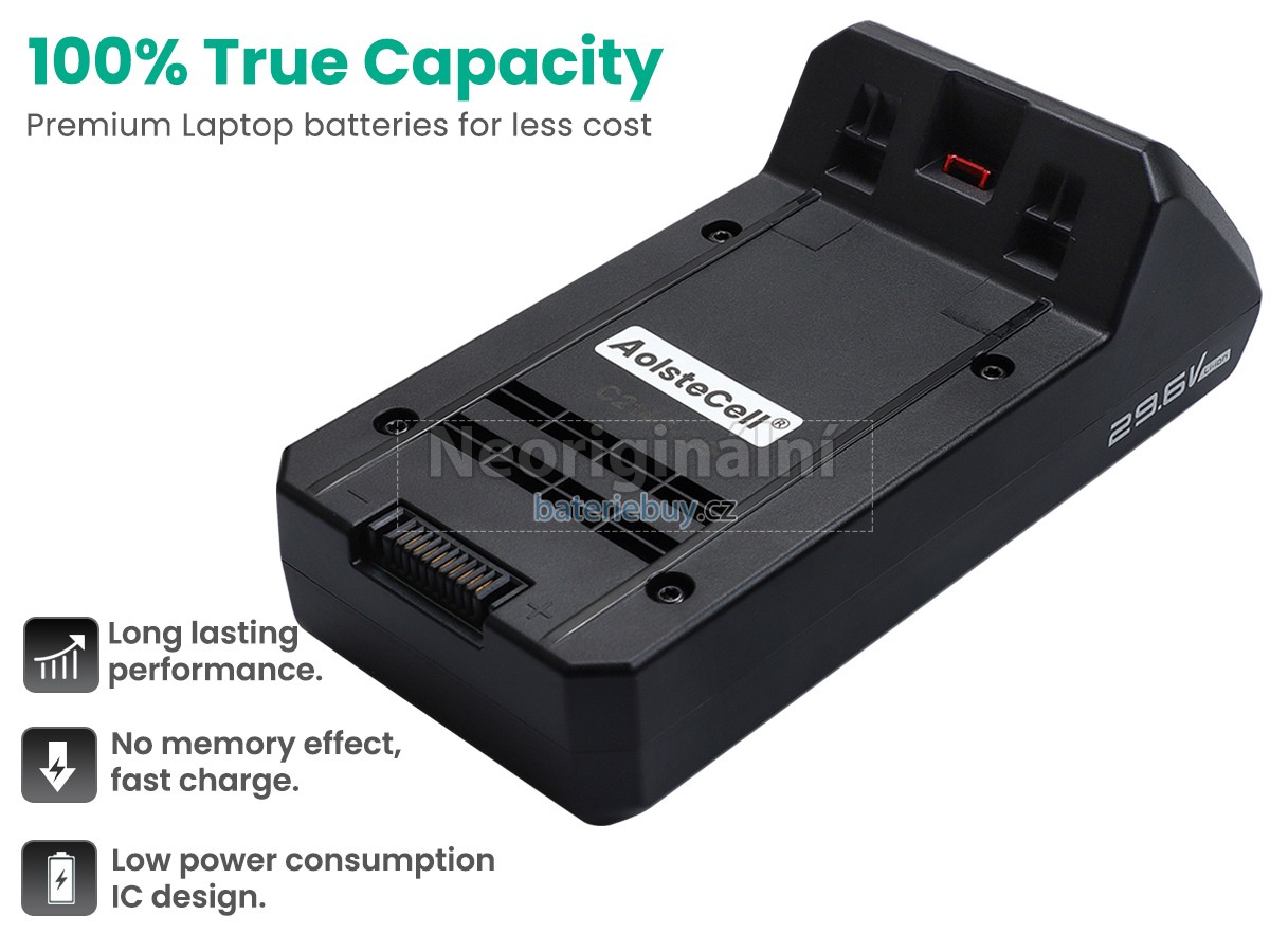 - Baterie se skládá z lithium-iontové baterie, která má vysokou rychlost nabíjení a vybíjení. Je bezpečná a stabilní a poskytuje více než 500 nabíjecích cyklů.