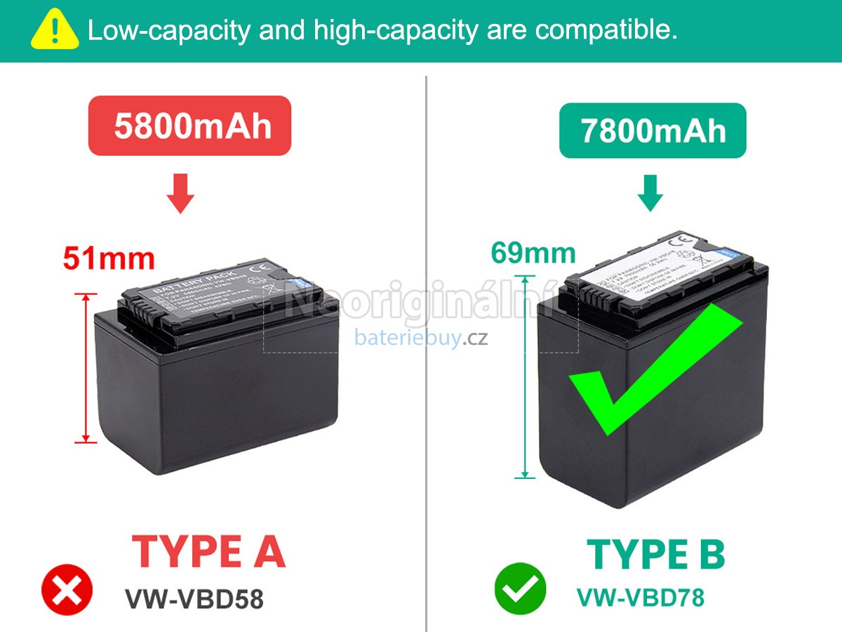 Bojíte se, že vašemu dojde baterie? Je čas vyměnit novou baterii. Panasonic HC-X1500 Baterie je vysoce kvalitní baterie. Vnitřní část baterie je tvořena vysoce kvalitními články a komponentami a obal je tvořen odolnými materiály, které zajišťují nejlepší výkon. Lithium-iontová technologie umožňuje nabíjení baterie rychleji a nemá takzvaný "paměťový efekt". Jsme profesionální firma na baterie, která se zaměřuje na poskytování nejlepších baterií a nejkvalitnějších služeb zákazníkům. Můžete si zakoupit naši baterie pro Panasonic se slevou. Máte-li jakékoli dotazy ohledně baterie pro Panasonic HC-X1500, můžete nás kontaktovat e-mailem a my vám odpovíme do 24 hodin.