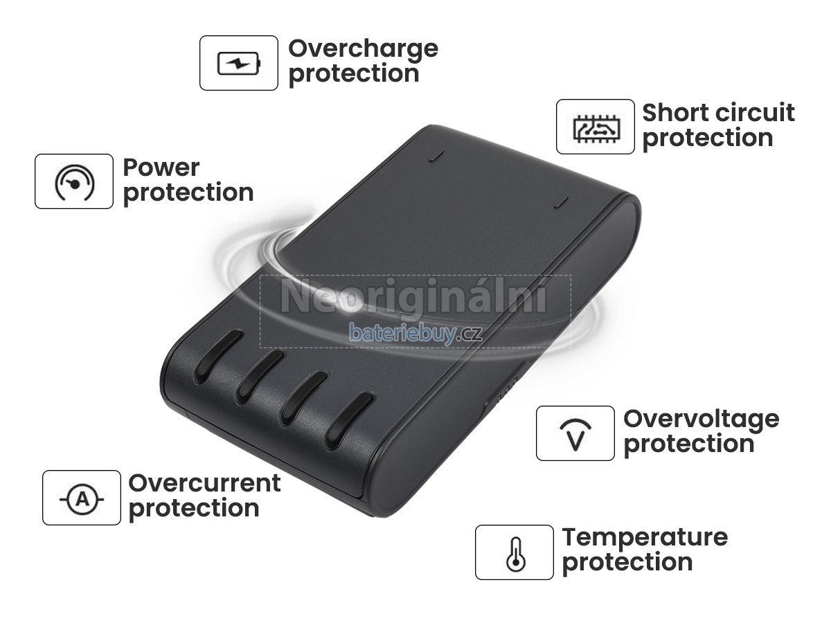 - Baterie se skládá z lithium-iontové baterie, která má vysokou rychlost nabíjení a vybíjení. Je bezpečná a stabilní a poskytuje více než 500 nabíjecích cyklů.