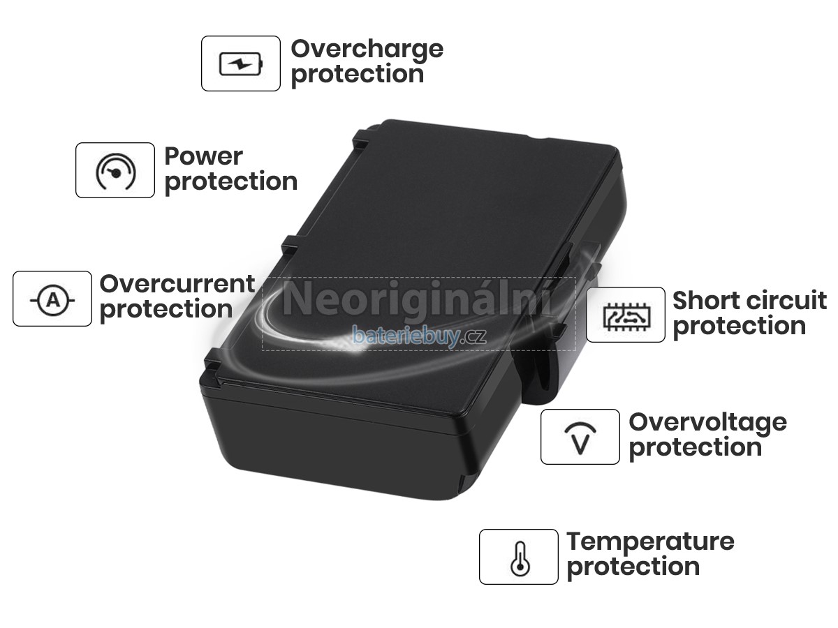 - Baterie se skládá z lithium-iontové baterie, která má vysokou rychlost nabíjení a vybíjení. Je bezpečná a stabilní a poskytuje více než 500 nabíjecích cyklů.